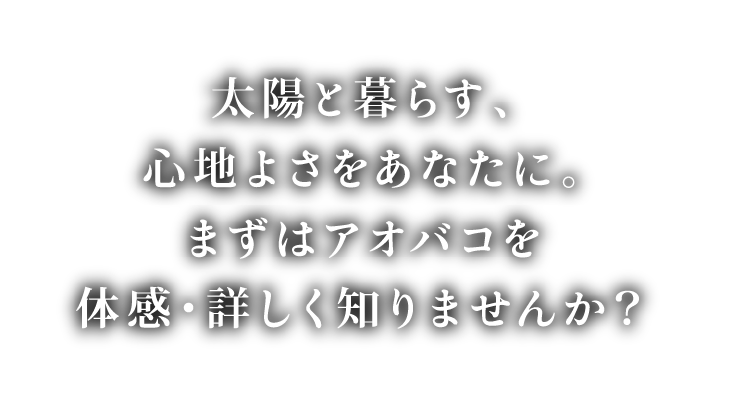 太陽と暮らす、心地よさをあなたに。まずはアオバコを体感・詳しく知りませんか?