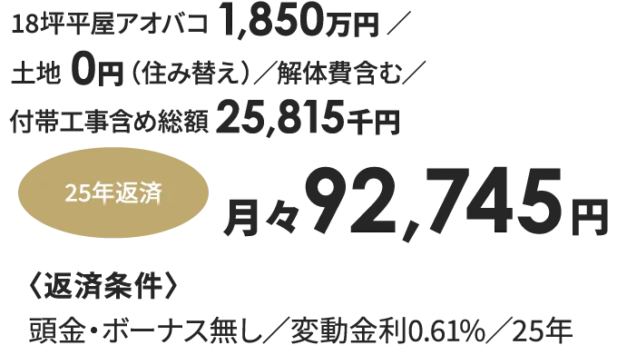 • ※返済額は実際の土地価格・建物価格・融資条件等によって異なります。