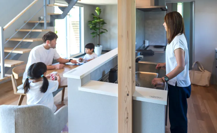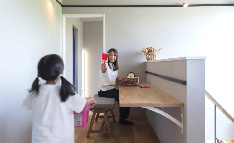 2階に水回りを集約しているので、1階は家族が集まってもゆったりと寛ぐことができます。「2階に水回り?」と思うかもしれませんが、洗濯動線がコンパクトになり家事の時短も叶えられます。