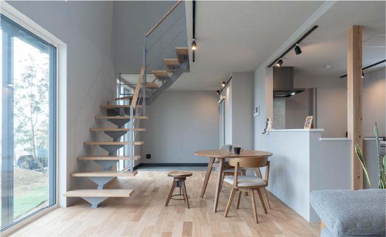 スケルトン階段や吹き抜けもあり、広々とした空間で家族がゆっくりと過ごせます。