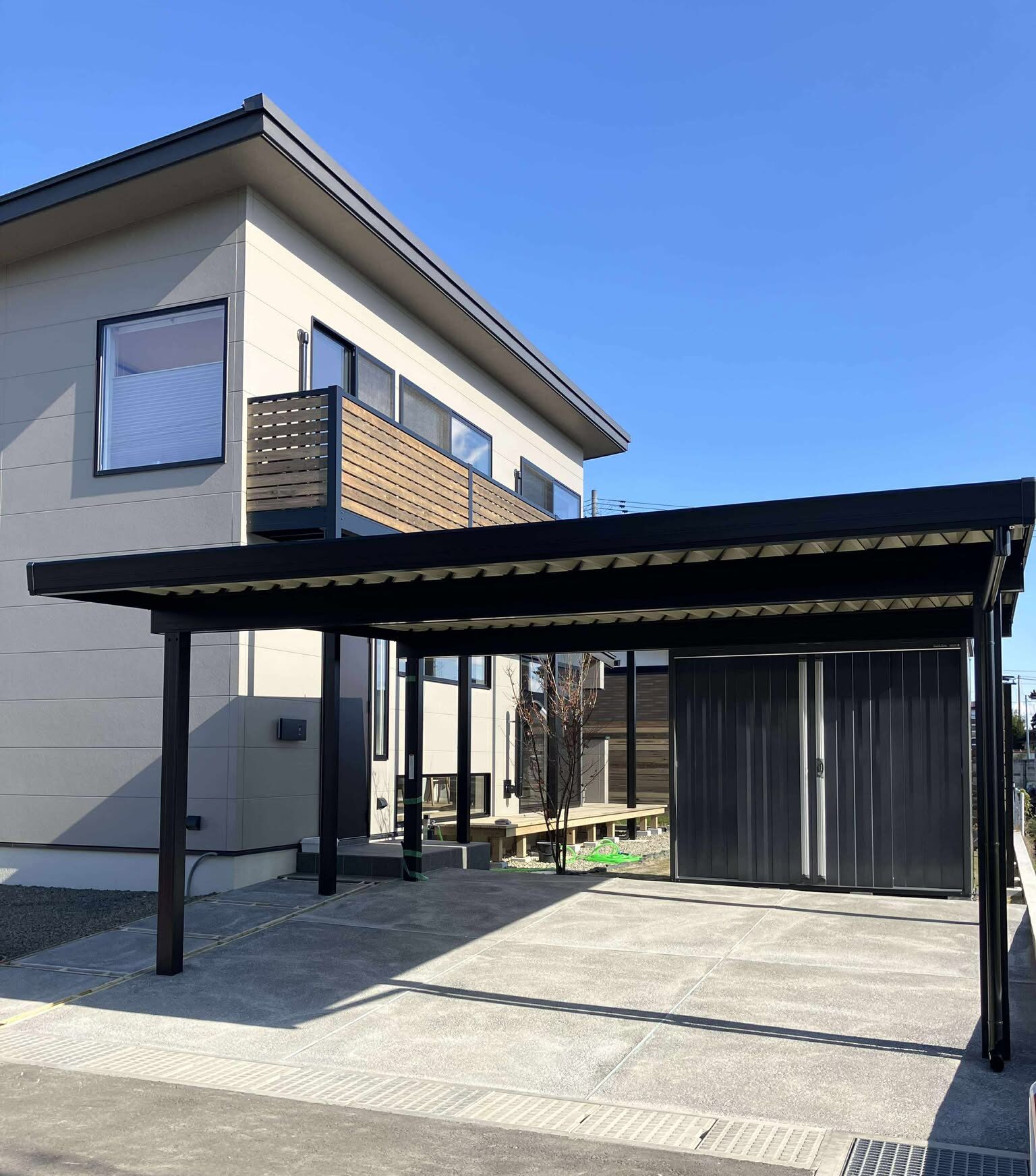 カーポートは、デザイン性とプライバシーの確保を両立しています。